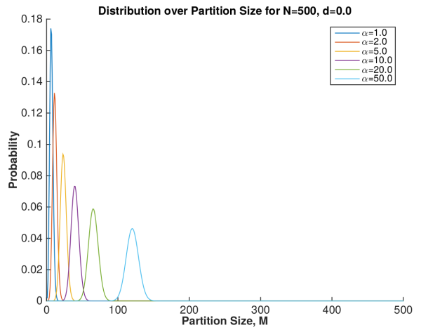 . The thing to notice is that the number of clusters is moderately well determined by the concentration parameter. In fact the mean (expected value) of